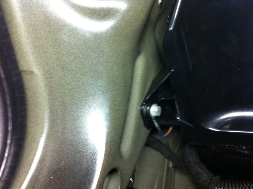 Steuerung per Kabelbinder im Radhaus fixieren und Massekabel (braun) an Massepunkt (10ner Mutter) festschrauben (Achtung! Kofferraum nicht schließen wenn der Massepunkt abgeschraubt ist! Kofferraum lässt sich ohne Masse nicht mehr öffnen!!):